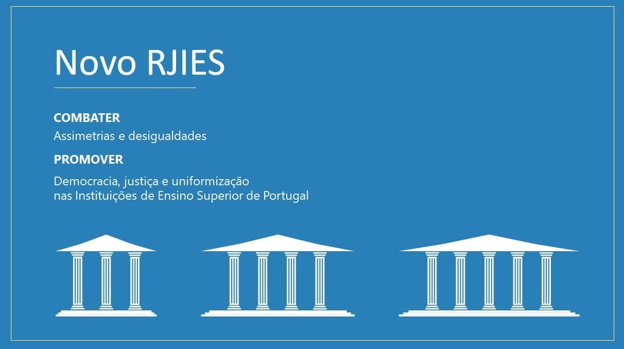 — Referem-se ao RJIES como uma opção e uma imposição no funcionamento das IES, que levou a uma perda grande de participação democrática dos diversos corpos, crítica que fizeram desde sempre, o que motivou a oposição a esta opção. Previa-se a revisão ao fim de 4 ou 5 anos, mas já passaram 18 anos. Têm vindo a avançar com diversas propostas, designadamente relacionadas com a democratização das IES, no sentido da promoção da participação.