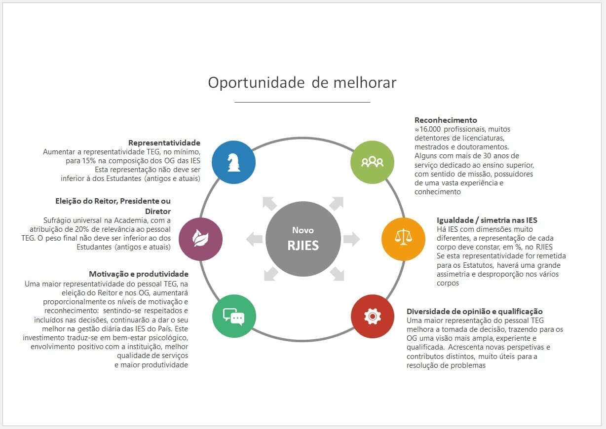 Agradecemos a oportunidade de apresentar a nossa proposta de alteração ao Regime Jurídico das Instituições de Ensino Superior (RJIES), com foco no enquadramento e na valorização do pessoal Técnico, Especialista e de Gestão (TEG).